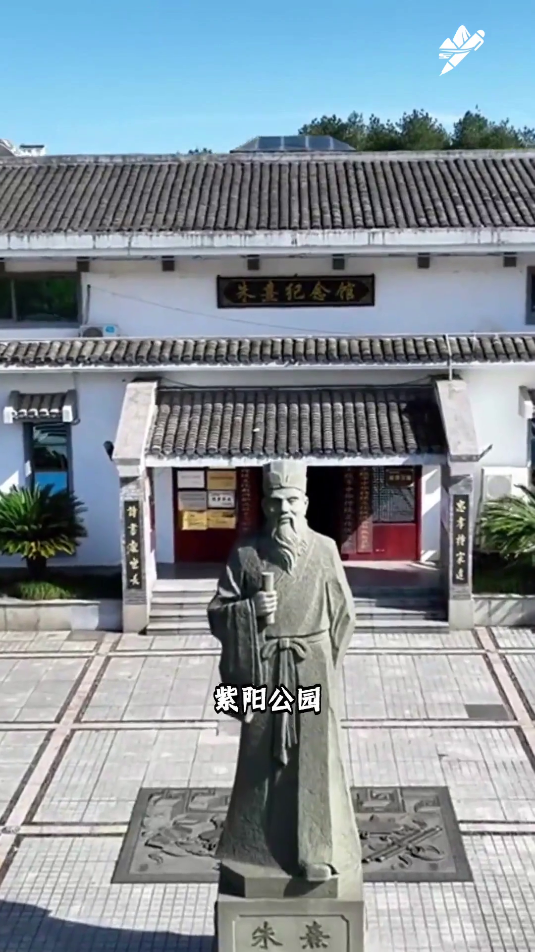 紫阳公园 朱熹文化主题临江公园 亭台水榭错落绿植繁茂适合散步赏景